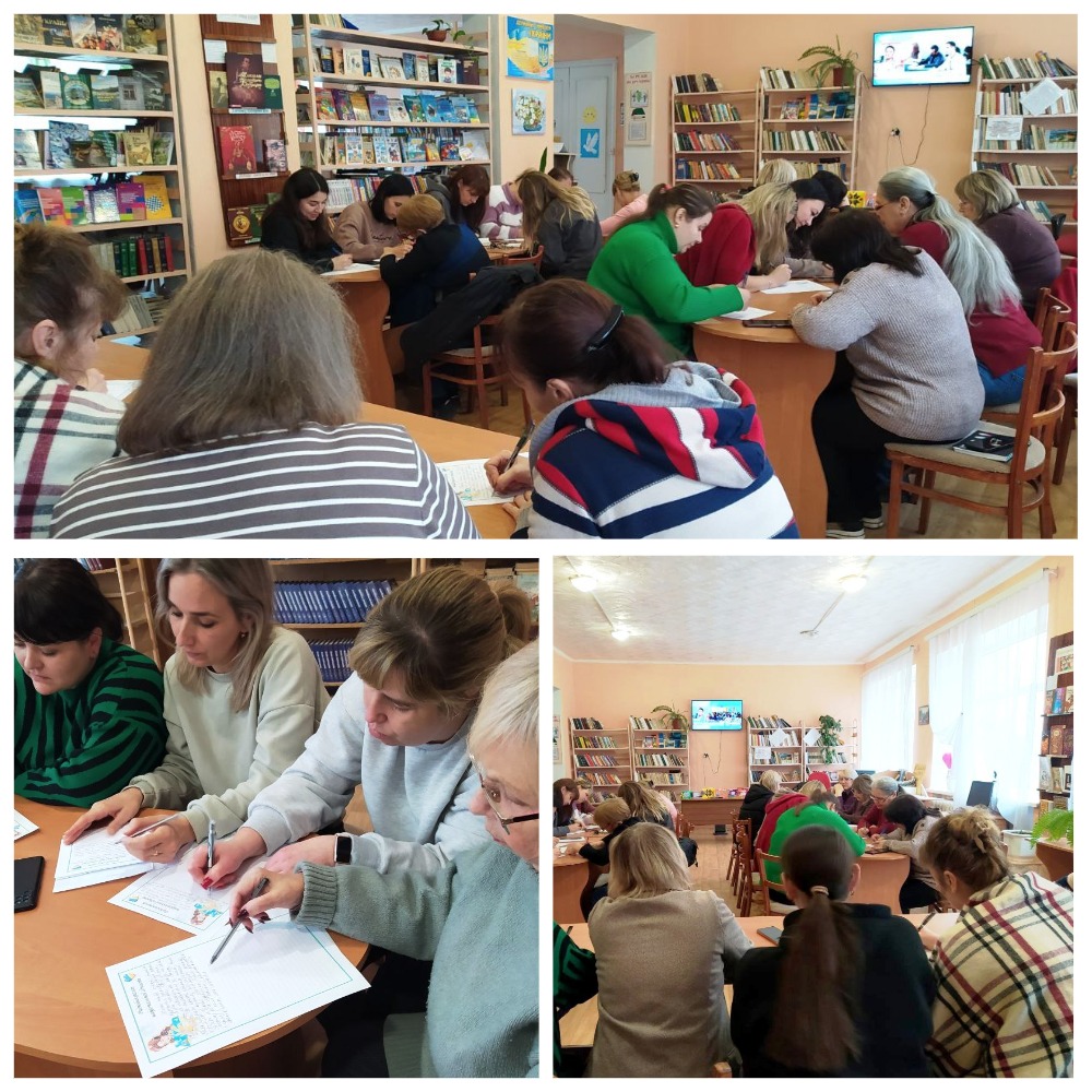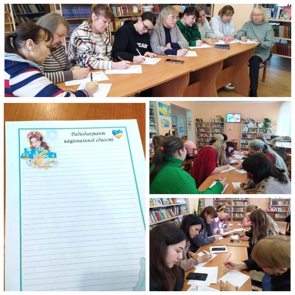 Традиційно у День писемності та мови українці пишуть Диктант національної єдності. Його 25-річна історія – це історія не про грамотність. Це історія про любов до мови, спільність, про те, як нація може гуртуватися навколо слова. Тож, сьогодні (27 жовтня) у бібліотеці гімназії зібралися педагоги та інші працівники школи, аби долучитися до всенародного флешмобу – написання радіодиктанту. Авторкою Радіодиктанту національної єдності цьогоріч стала письменниця Євгенія Кузнєцова. А читала текст під назвою «Треба жити!» – акторка Наталія Сумська.