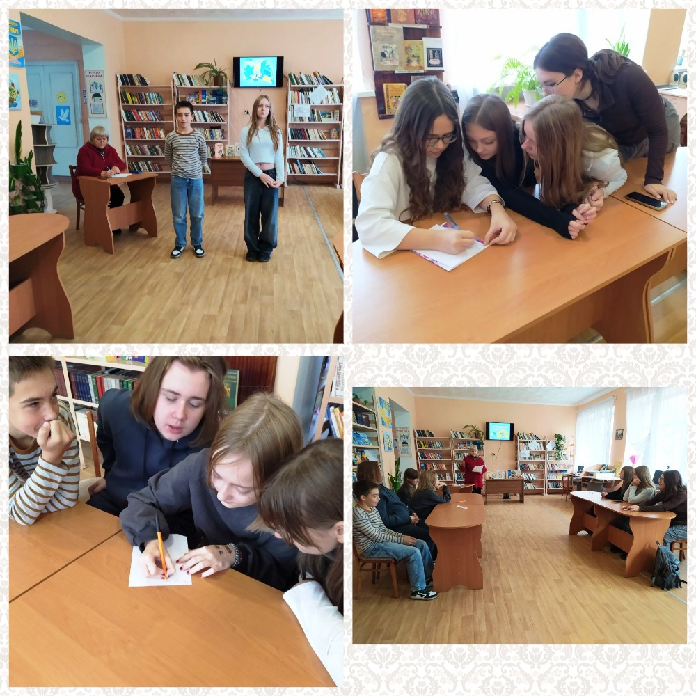 Напередодні канікул у бібліотеці гімназії відбувся мовознавчий конкурс «Мови рідної скарбниця». Бібліотекарка Пальчевська О.М. запросила до гри найкращих знавців української мови серед 7-х класів. За перемогу боролися команди від 7-А та 7-В класів, а головним суддею була учитель української мови та літератури, заступник директора Степанова Л.М.. Розпочали гру капітани команд, які позмагалися один з одним в ерудиції щодо знань з української мови. Тур «Брейн-ринг» налічував 30 питань для обох команд. Суперники достойно подолали і цю конкурсну перешкоду на шляху до перемоги. Були цікаві завдання на кшталт: підібрати якнайбільше прикметників-означень до слова «мова»; утворити нові слова з 12 літер запропонованого слова; продовжити прислів’я, приказку; відредагувати неправильно написані словосполучення… Але найбільше всім сподобався конкурс «Пантоміма»! Представник команди мав показати фразеологічний зворот, команда – відгадати та розтлумачити його значення. Це було дуже весело! І обидві команди успішно впоралися з цим завданням. Наостанок потрібно було вгадати українську народну пісню за мелодією. Неочікувано, це завдання викликало у семикласників труднощі, але суддя Любов Миколаївна всі мелодії вгадала сама, врятувавши ситуацію. За підсумками всіх конкурсних турів перемогу здобула команда дівчат 7-А класу. Але гравці 7-В також достойно виступили та показали свої знання і були нагороджені смачними призами. А бібліотекарка Олена Миколаївна нагадала всім про необхідність вивчення та збереження нашого національного багатства – української мови.