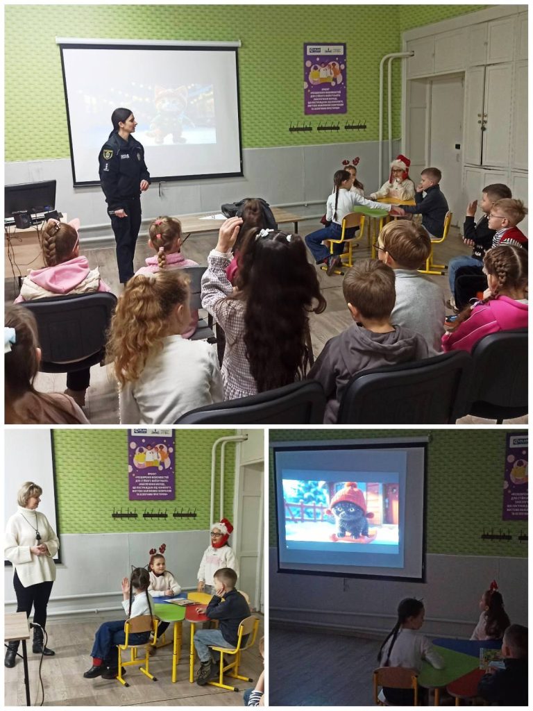 Перш за все, другокласники подбали про безпечні зимові канікули. Разом з інспектором СОБ Кордюковою Тетяною Юріївною провели змістовний та цікавий «Урок безпеки». Тут хлопчики та дівчатка повторили загальні правила поведінки наодинці вдома, безпечне поводження з газовими та електричними приладами. Переглянувши повчальний мультик, разом з кошенятами нагадали правила поводження біля водойм, на льоду в зимовий період. Не оминули своєю увагою і правила мінної безпеки.