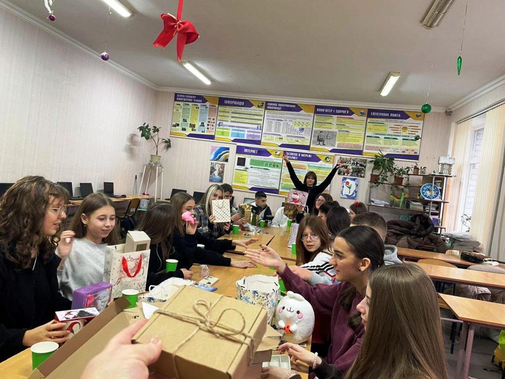 Класний керівник 8-А класу Пархоменко О.С. поділилася з нами передноворічними активностями своїх вихованців. У класі було організовано захоплюючу гру «Таємний Санта», під час якої восьмикласників «поглинув подарунковий вир». Але приємності на цьому не закінчилися… На гімназистів ще чекав «круглий стіл» із піцею та щирим спілкуванням. А особливо зворушливою та незабутньою стала зустріч із нашим захисником, батьком учениці класу – старшим солдатом Москаленком Миколою Вікторовичем. Тож для учнів 8-А минулий тиждень став по-справжньому дивовижним…