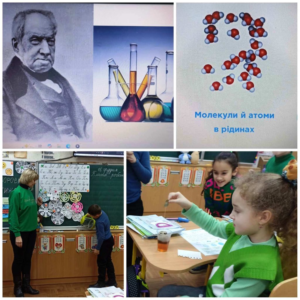 Уроки англійської мови та курсу «Я пізнаю світ» наповнилися математичними хвилинками, де діти вчилися рахувати, визначати час за годинником, мандрували в «Країну об’ємних геометричних фігур». Неймовірним відкриттям для маленьких «інтелектуалів» стало знайомство із шотландським вченим Робертом Броуном та його знаменитим «броунівським рухом». Віднині другокласники можуть дати змістовну відповідь на питання: чому чай має колір, ми відчуваємо запахи, а фарба розтікається на вологому папері. Захопившись явищем дифузії, юні науковці продовжили дослідження і в домашніх лабораторіях.