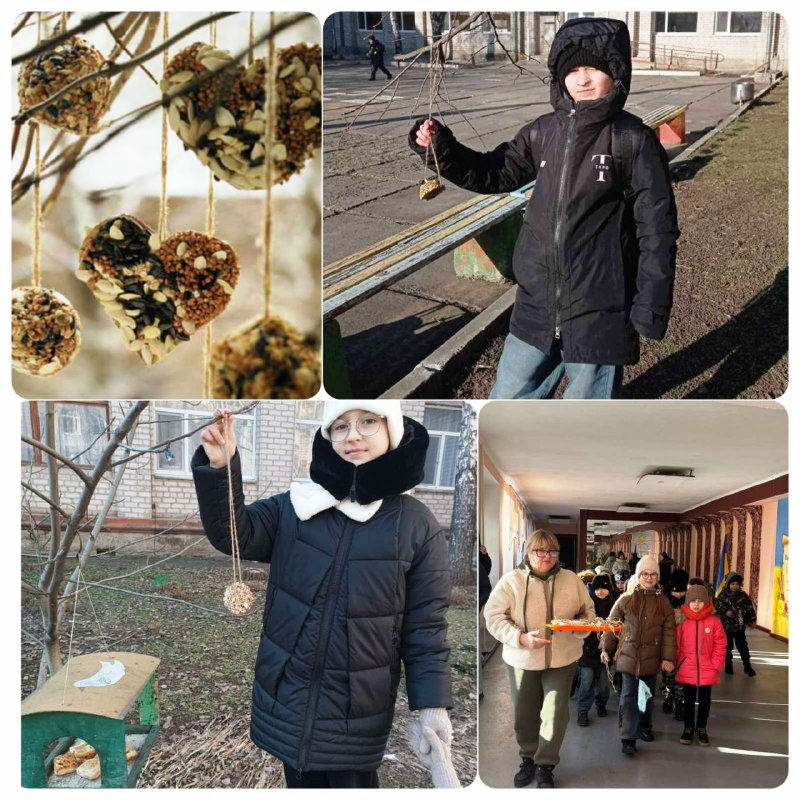 Зима стала випробуванням не лише для людей, а й для птахів. Низька температура повітря, подекуди ожеледиця – стали «льодяною» пасткою для пернатих. А у другокласників є заготовлене «печиво» із зернят, які вони розвішали біля школи та біля будинків району. Пшеничку та інші зернята розсипали по шкільним годівничкам. Учні 2-А закликають усіх наших читачів: «Не будьте байдужими і ви! Підгодовуйте птахів і тварин!».
