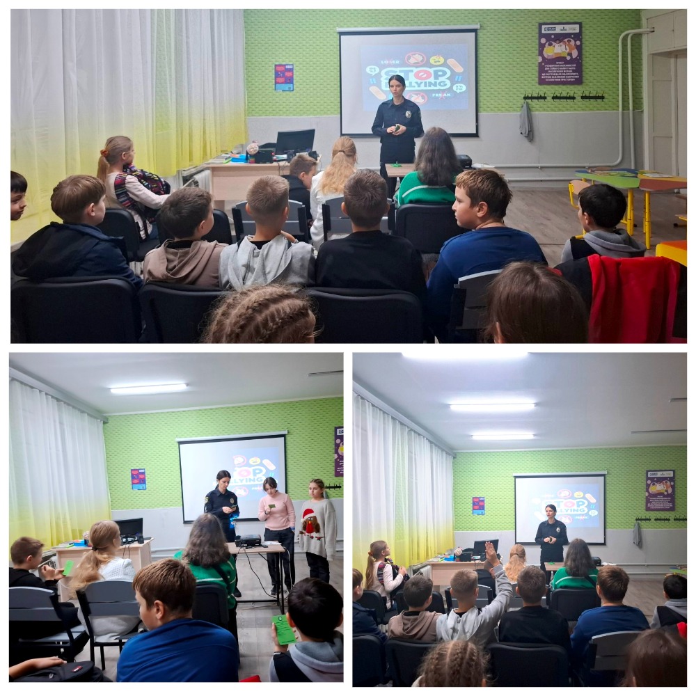 Тетяна Юріївна завітала до 1-А класу та поговорила з малюками на тему «Правила поведінки та безпека у школі». Інспектор розповіла дітям про основні правила безпечної поведінки у школі та під час перерв. Учні вчилися розрізняти небезпечні ситуації, знаходити правильні способи їх уникнення, розуміти важливість дотримання правил у класі, коридорах, їдальні та на шкільному подвір’ї. Під час заняття діти закріпили навички безпечної поведінки, вчилися співпрацювати, допомагати один одному та дбати про власну й колективну безпеку.
