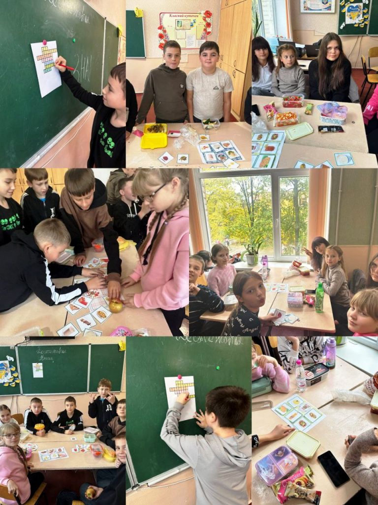 Під час заходу учні дізнавалися, які продукти насправді є корисними для організму, а від яких краще відмовитися. Діти активно брали участь у бесіді, висловлювали власні думки та навіть побували у ролі кухарів шкільної їдальні – самостійно склали зразок меню для школярів: сніданок, обід і вечерю.