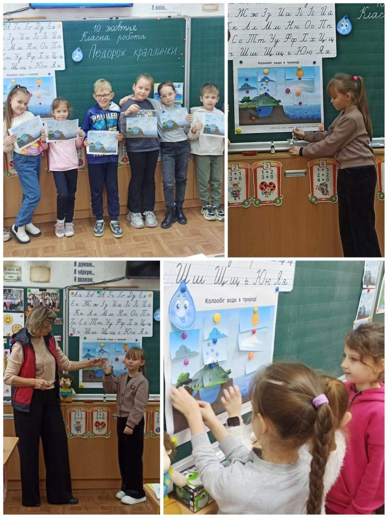 А з краплинкою води юні науковці здійснили кругову подорож в природі і стали свідками її чарівних перетворень. Рідкий, газоподібний та твердий стани води, процеси випаровування та конденсації діти вивчали під час практичних вправ та досліджень.