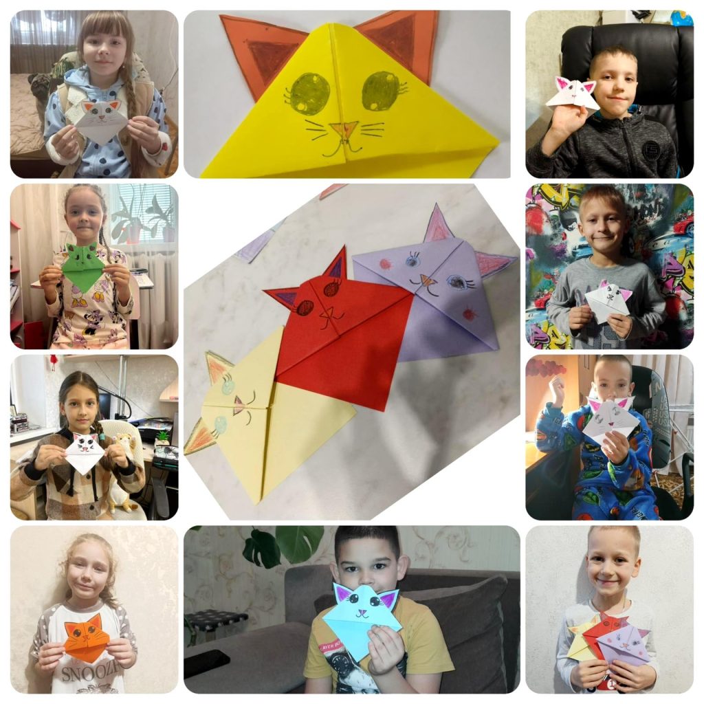 Дистанційно учні працювали за технікою оригамі – виготовляли цікаві закладинки «Киці та котики» для підручників, книжок, блокнотів. Оцініть!